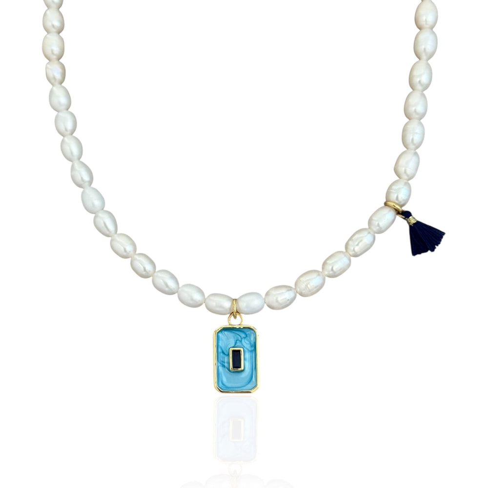 The Blue Square Pearl Necklace is a refined blend of timeless elegance and contemporary charm. Its luminous freshwater pearls are perfectly accented by a vibrant blue enamel pendant with a sparkling CZ centerpiece, making it an effortlessly chic addition to any outfit. Designed to transition seamlessly from casual days to special occasions, this piece invites compliments and adds a touch of sophistication to your personal style. Whether worn solo or layered, it’s the kind of accessory you’ll reach for again and again.