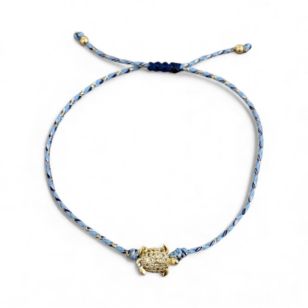 • CZ tiny sea turtle braided bracelet