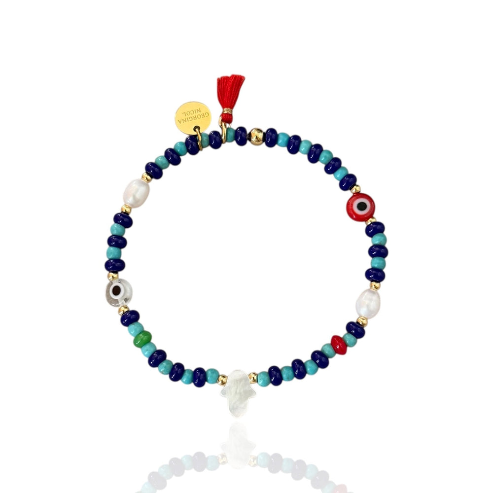 • Beads: multicolor glass beads and evil eye accents