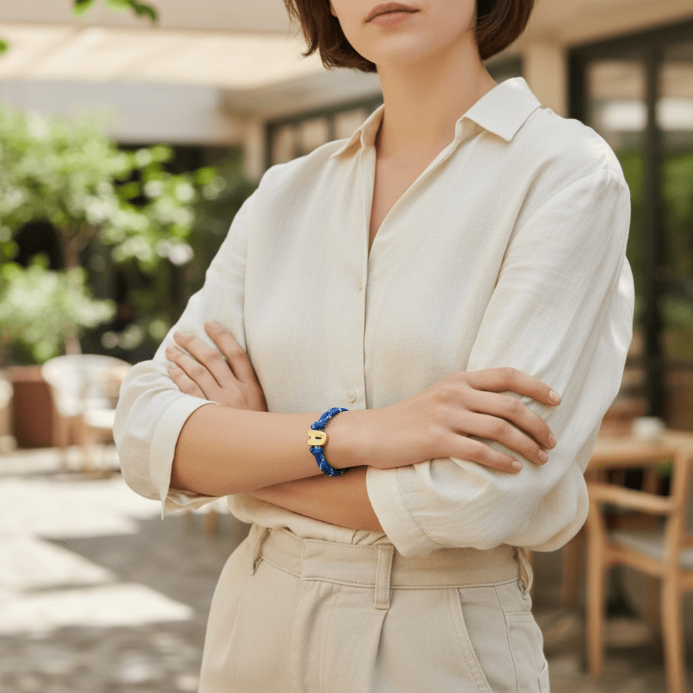 A bold personalized bracelet designed with an oversized gold plated initial on a vibrant cord. Its modern silhouette makes it a favorite for stacking and for adding a trendy, standout touch to any look. Adjustable for the perfect fit and handcrafted with attention to detail.